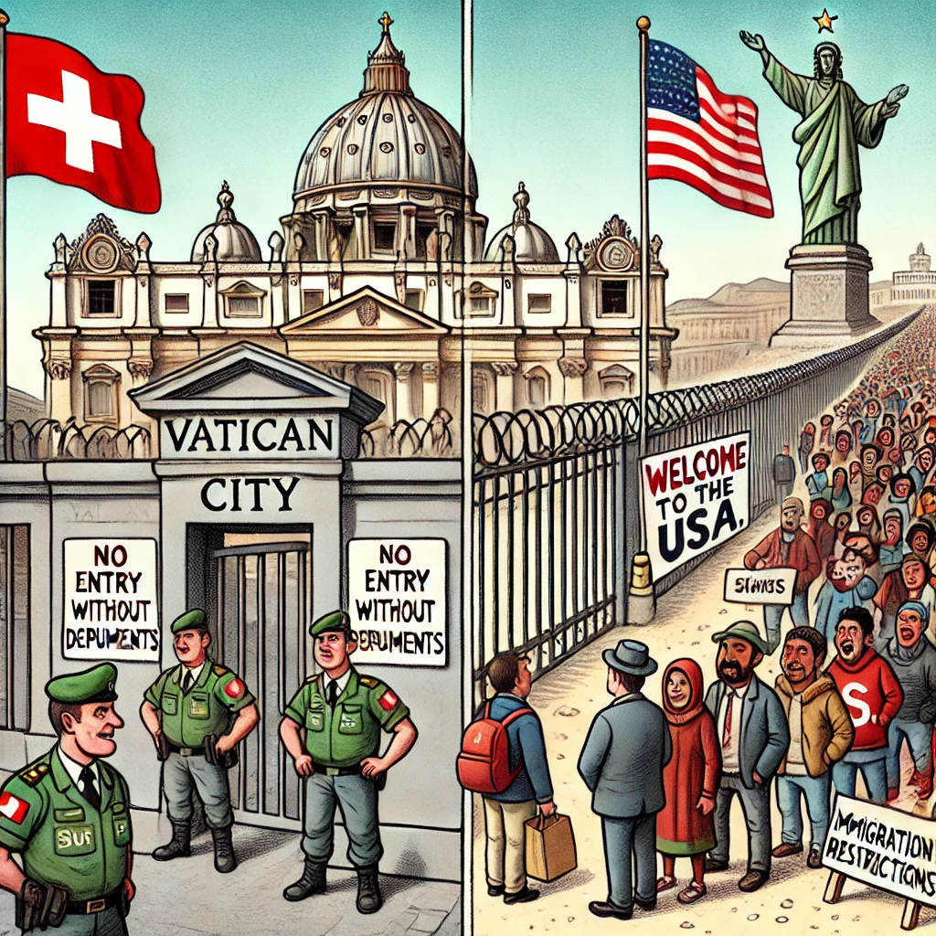 El Vaticano endurece las penas contra las entradas ilegales mientras defiende las fronteras abiertas en todo Occidente. El Estado Vaticano ha publicado un decreto endureciendo las penas para quienes entren en el recinto sin el debido permiso. En pleno año jubilar, el Vaticano ha promulgado un decreto, firmado por el cardenal Fernando Vérgez el 19 de diciembre de 2024.