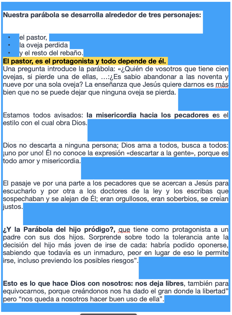 Una pregunta introduce la parábola: «¿Quién de vosotros que tiene cien ovejas, si pierde una de ellas, …