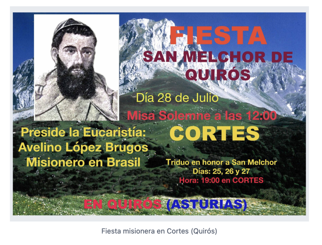 Este jueves, día 28 presidirá la Eucaristía en Cortes (Quirós) en la fiesta en honor de San Melchor de Quirós.
