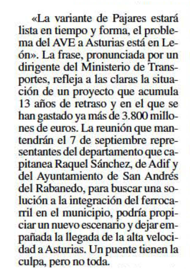 Señores de la Administración ¿va a quedar Asturias como la única comunidad autónoma sin AVE en los próximos meses (se prometía para Mayo de 2023 “yo se lo oí personalmente (17-7-22) al Presidente Adrián Barbón”; ¿ASTURIAS va a seguir marginada una vez más?